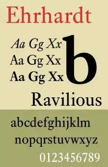 - ↑ "Monotype Ehrhardt". MyFonts. Monotype. Retrieved 5 November 2015.