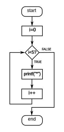 Flow diagram a C-style for loop, representing the following code: