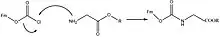 - C13H9−CH2−OC(O)NHR + (CH2)5NH → (CH2)5NH+2 + [C13H8−CH2−OC(O)NHR]−