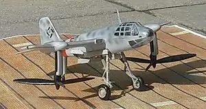 A large amount of wind tunnel testing was undertaken, along with work on gearboxes, drives and power-pivoting mechanisms, and a full-scale mock-up of the aircraft was built to demonstrate the VTOL concept, but much of this was destroyed by Allied bombing raids and all work was shelved in 1944,[1] when Focke-Achgelis estimated that there was little likelihood of a practical prototype being available before 1947.