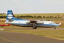 In 1953, the proposed airliner received the name Friendship.[1] A total of four prototypes were produced, two of these being flyable aircraft that were used for the test flight programme and were paid for by the Netherlands Institute of Aircraft Development; the other two prototypes were for static and fatigue testing.[2] On 24 November 1955, the first prototype, registered PH-NIV, performed its maiden flight.[2] The second prototype and initial production machines were 0.9 m (3 ft) longer than the first prototype in order to address a revealed tendency for slightly tail-heavy handling as well as to provide additional space for four more passengers, raising the maximum number of passengers which could be carried to 32. These aircraft were also powered by the Dart Mk 528 engine, which was capable of generating greater thrust.