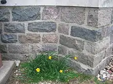 Foundation of Our Lady of Good Counsel Catholic Church, cut from local glacial erratic fieldstones in the early 1900s.