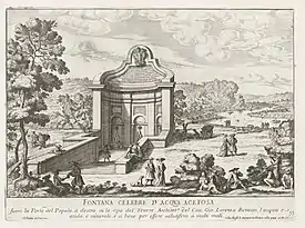 The Fontana dell'Acqua Acetosa is a fountain in Rome (Italy), located in the flat area with the same name, in the quarter Parioli; at this point the river Tiber forms a deep bend before heading north again. The fountain rises at a lower elevation than the street level, and is therefore accessed via a staircase. In 2003 the Fondo Ambiente Italiano, on the basis of a popular survey,[1] identified it as the monument to which Italians are fondest of.