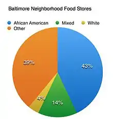 - ↑ Zenk, Shannon N.; Schulz, Amy J.; Israel, Barbara A.; James, Sherman A.; Bao, Shuming; Wilson, Mark L. (2005). "Neighborhood Racial Composition, Neighborhood Poverty, and the Spatial Accessibility of Supermarkets in Metropolitan Detroit". American Journal of Public Health. 95 (4): 660–7. doi:10.2105/AJPH.2004.042150. PMC 1449238. PMID 15798127.