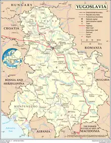 Unwilling to accept the interpretation that it is a new state that shares succession with other former SFR Yugoslav republics, FR Yugoslavia rejected to reapply for membership in international organizations leading the country to international isolation and it sometimes being described as a pariah state all up until the overthrow of Slobodan Milošević in 2000.[3] International status of the country improved somewhat following the 1995 Dayton Peace Agreement which ended Bosnian War and 1995 Erdut Agreement which opened the space for mutual recognition and establishment of full diplomatic relations with Croatia in 1996.[4] This improvement was nevertheless not long lasting with the beginning of Kosovo War and 1999 NATO bombing of Yugoslavia.