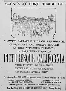 In 1894 a sentry box from Fort Humboldt was exhibited at a fair in San Francisco. According to a newspaper article, "Among the Humboldt exhibits there is one which stirs the heart of every patriot and awakens memories of the nation's great captain. It is the original sentry-box of Fort Humboldt, here General Grant did duty when he was there."[8]