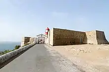 Fort São Vicente (Fortaleza de São Vicente in Portuguese) is a military monument in Sagres, in the Algarve region of Portugal. It consists of the remains of a fortification, with a lighthouse inside.[1] It was built in the 16th century to protect a coastal strip and an existing monastery on the site.[1] In 1587 it was destroyed by British privateer Francis Drake, and rebuilt in 1606.[2] In the mid-19th century, a lighthouse was built on the site, which was replaced by a new one in the early 20th century.[3] In the mid-2000s, Cape São Vicente was closed to the public for construction work.[4]