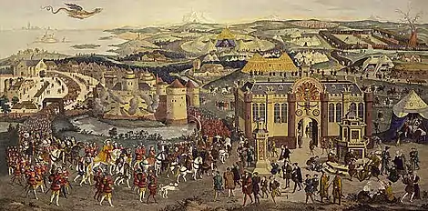 Queen Elizabeth I, whose own legitimacy was challenged by Mary Queen of Scots, worked with the Protestant Scottish Lords to expel the French from Scotland in 1560.[27] The Treaty of Edinburgh in 1560 virtually ended the "auld alliance." Protestant Scotland tied its future to Protestant England, rejecting Catholic France. However, friendly relations at the business level did continue.[28]