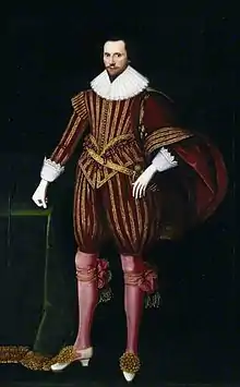 ![]() Francis Seymour, 1st Baron Seymour of Trowbridge, portrait c.1620 style of William Larkin. National Trust, Petworth House, which was rebuilt by his younger grandson Charles Seymour, 6th Duke of Somerset (1662–1748) | |