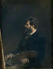 He married in 1874 and, the following year, moved to Paris, where his works consisted largely of detailed historical genre scenes and portraits for high society patrons, many of whom were former clients of Marià Fortuny. During this time, he absorbed some elements from the style of Meissonier as well as brightening his palette under the influence of the Impressionists. His paintings were bought by Paris based art dealer Etienne Haro.[3] He also made contacts with art dealers in the United States. William Henry Vanderbilt and Augustin Daly were among those who bought his paintings.