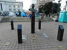 In 1998, the Oakland City Council renamed City Hall Plaza as "Frank H. Ogawa Plaza"[10] in honor of Frank H. Ogawa, a civil rights leader[11] and the first Japanese American to serve on the Oakland City Council.[10] Ogawa served on the Council from 1966 until his death in 1994.[12] The plaza displays a bronze bust of Ogawa.