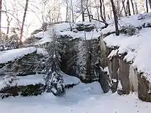The Frankenburg is a natural monument with the ruins of a rock castle in the county of Südliche Weinstraße in the German state of Rhineland-Palatinate. It lies above the Modenbach valley on a rocky outcrop of the Frankenberg called the Frankenfelsen and was built to guard the road opposite Meistersel Castle.
