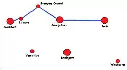 The Frankfort and Cincinnati Railroad ran between Frankfort, Kentucky, and Paris, Kentucky, with a major stop in Georgetown, Kentucky; a distance of 40 miles (64 km). It was at Georgetown that it crossed the Southern Railway.[2]