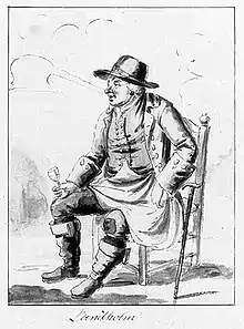 Ink and watercolor drawing by Elis Chiewitz of Brandy-Distiller Lundholm, described by Carl Michael Bellman in Fredman's Songs, No. 6, with the words "If ever thy wife kissed thy chin in her life, she'd drunk have been."