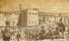 General Amherst also oversaw the transfer of French fortifications to British control on the western frontier. The policies which he introduced in those lands disturbed large numbers of Natives and contributed to the outbreak of Pontiac's War in 1763,[70] in which a series of Native attacks on frontier forts occurred, such as that on Fort Miami which effectively brought a nearly half-century long period of European garrisoning at Kekionga to an end. The frontier settlements required the continued deployment of British forces, and the conflict was not fully concluded until 1766.[71]
