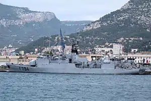 In January 2013, during Operation Serval in Mali, the ship escorted a ro-ro vessel chartered by the French Navy, MN Eider, which was transporting equipment to Senegal.[4]
