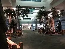 With the new concourse extension and new international arrivals facility completed, portions of the original 1960s terminal building were given a major renovation. The project was designed by CSHQA and completed in several phases between 2006 and 2010. While keeping the facility operational, nearly every part of the building was updated including the baggage claim area, security checkpoint, central lobby, ticketing area, and low-level concourse. The centerpiece of the project was “Sequoiascape,” a public art display in the central terminal lobby that depicts life-size, replica sequoia forest, reflecting the airport's role as a gateway to the nearby national parks. The giant trees appear to be supporting the roof of the terminal and are surrounded by fallen logs, and other foliage, surrounded by the split rail fencing and granite curbs that visitors would see at the region’s national parks.[24][25][26][27]