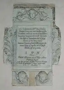 A wooden plaque on the south wall of the nave records that the church was completely re-roofed in 1827. A second plaque records that the church was restored in 1892, with the architects being Ewan Christian for the chancel and "Messrs Waller" for the nave and tower. This may refer to the architect and antiquarian Frederick S. Waller of Gloucester. The parish war memorial in the north aisle was lettered by Ninian Comper and dedicated in 1952.[5] The ecclesiastical parish of St James the Great is now part of the United Benefice of Burford, Fulbrook, Taynton, Asthall, Swinbrook and Widford.[6]