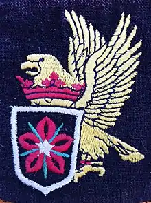 BadgeGold falcon rising with scarlet pimpernel