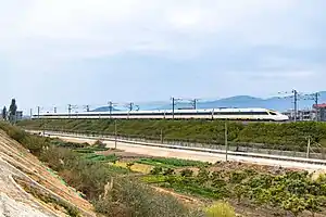 The project was approved by the State Council in July 2004. Construction began in September 2005 and was completed in December 2009. Commercial operation began on April 26, 2010.[3] Unlike later Chinese high-speed rail lines which were built to higher speed standards of 300 or 350 km/h (186 or 217 mph), the Fuzhou–Xiamen line was built to the 250 km/h (155 mph) standard with the capacity for upgrade to 300 km/h (186 mph). The opening of high-speed rail line greatly reduced travel times by rail on the coast of Fujian. Passenger train service on the line average 200 km/h (124 mph). The trip from Fuzhou to Xiamen on the non-stop express train takes 1 hr. 28 min. compared to the 10-hour train ride via railroads that cut inland.[4] The trip by long-distance bus on the express highway takes 2.5 to 4 hours.[4]