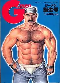 G-men included both editorial and photographic material, as well as prose stories and manga. G-men was designed to encourage steady readership by presenting a more well-defined fantasy image, and by running serialized, continuing manga stories (as opposed to the one-shot stories standard in other in gay men's magazines) which encouraged purchase of every issue.[3] Gengoroh Tagame's work was an important influence on G-men's style; he provided the cover for the first 63 issues, as well as manga stories for most issues. G-men was also one of the first gay men's publishers to offer collections of manga bound into tankōbon. The manga published in G-men, particularly Tagame's work, was influential in the development of manga for gay men as a marketable category.