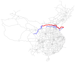 The Rongcheng–Wuhai Expressway (Chinese: 荣成—乌海高速公路), designated as G18 and commonly referred to as the Rongwu Expressway (Chinese: 荣乌高速公路) is an expressway that connects the cities of Rongcheng, Shandong, China, and Wuhai, Inner Mongolia. When fully complete, it will be 1,820 km (1,130 mi) in length.