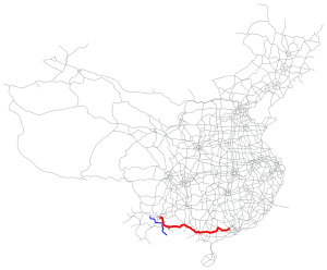 The Guangzhou–Kunming Expressway (Chinese: 广州—昆明高速公路), designated as G80 and commonly referred to as the Guangkun Expressway (Chinese: 广昆高速公路) is an expressway in China that connects the cities of Guangzhou, Guangdong, and Kunming, Yunnan. When complete, it will be 1,511 km (939 mi) in length.