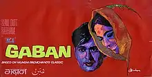 Gaban (transl. Embezzlement) is 1966 Hindi film directed by Hrishikesh Mukherjee, based on Munshi Premchand's classic novel by the same name.[2] It had Sunil Dutt and Sadhna playing the lead role. The film has music by Shankar Jaikishan,[3][4] and lyrics were by Shailendra and Hasrat Jaipuri.[5]