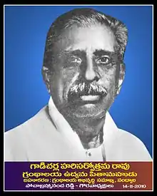Gadicherla Harisarvottama Rao is considered one of the Trinity (along with Iyyanki Venkata Ramaiah and Paturi Nagabhushanam) of Library movement in Andhra Pradesh ("Granthalayodyama Trimurthulu"). He also served as its President[4]