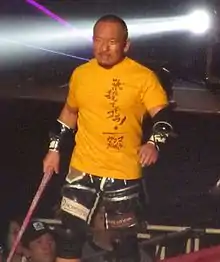 In August 2009, he and CIMA participated in the annual Summer Adventure Tag League Tournament, but they performed very poorly, winning only one match out of eight and finishing in last place. However, they would win the Open the Twin Gate Titles on December 29, beating champions Shingo Takagi & YAMATO. Then, they strangely turned the belts in, declaring themselves to be only tentative champions, and announced their desire to face a strong team to determine the actual champions. On February 10, he and CIMA defeated Naruki Doi & Masato Yoshino to become the full champions. On March 22 they lost the titles to Shingo and Cyber Kong. On May 13, 2010, Gamma, CIMA and Genki Horiguchi defeated Don Fujii, Masaaki Mochizuki and Akebono to win the Open the Triangle Gate Championship. On October 25, 2010, Gamma, CIMA and Horiguchi lost the Open the Triangle Gate Championship to Naoki Tanisaki, Yasushi Kanda and Takuya Sugawara.[2] On November 13, Gamma betrayed WARRIORS by revealing his partner as Naruki Doi for his upcoming Twin Gate championship match at Gate of Destiny, joining Doi's unnamed unit. On November 23, 2010, Gamma and Doi defeated K-ness and Susumu Yokosuka to win the Open the Twin Gate Championship.[3] They would lose the title to Don Fujii and Masaaki Mochizuki on January 10, 2011. On January 14, 2011, Doi's unnamed unit aligned themselves with the WARRIORS stable, who turned heel in the process.[4] On January 18 the new group was named Blood Warriors.[4] On May 27, the rest of Blood Warriors turned on Gamma and gave his spot in the group to Kzy.[5] Gamma then went on to join Masaaki Mochizuki's Junction Three stable.[6] On June 18, Gamma, Masato Yoshino and YAMATO defeated the Blood Warriors team of CIMA, Naruki Doi and BxB Hulk to win the vacant Open the Triangle Gate Championship. They would go on to lose the title to the Blood Warriors team of Kzy, Naoki Tanisaki and Naruki Doi on September 2. On January 21, Gamma was pinned in a six-man "Loser Leaves Unit" match and was as a result forced to leave Junction Three. After aligning with Kaettekita Veteran-gun, Gamma and stablemates HUB and Magnitude Kishiwada won the Open the Triangle Championship on October 21.[7] They lost the title to Masato Yoshino, Naruki Doi and Shachihoko BOY just a month later. On June 14, 2015, he, CIMA and Don Fujii defeated the Jimmyz (Ryo "Jimmy" Saito, Genki Horiguchi H.A.Gee.Mee!!, and Jimmy Susumu) to win the Open the Triangle Gate Championship. On October 8, Gamma formed a new unit with CIMA, Eita, El Lindaman, Punch Tominaga, and rookies Takehiro Yamamura and Kaito Ishida. On November 1, the unit was named Over Generation. The same day, he, CIMA, and Don Fujii defended the Open the Triangle Gate Championship against the Jimmyz (Jimmy Susumu, Jimmy K-Ness J.K.S., and Ryo "Jimmy" Saito), and vacated the titles afterwards.