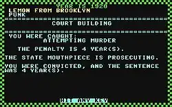 Each player tries to get promoted from punk to Godfather by purchasing a gun and attempting to murder someone.[2] If convicted, the "state mouthpiece" will sentence the player to four years in prison. For each subsequent sentence, the sentence is doubled unless a pardon can be purchased from the "state mouthpiece". Players can purchase trucking unions, prostitutes that are all assigned with the code name Betsy, and moonshine operations.[2] Limousines can be stolen from other players who already have them, with a certain degree of risk.[2] Betting on horse racing events can play a role in adding valuable dollars to the player's bank account.[5]