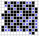 A pattern, for a given cellular automaton, consists of a finite set of cells together with a state for each of those cells.[6] A configuration contains a pattern when the states of the cells in the pattern are the same as the states of the same cells in the configuration (without translating the cells before matching them). The definition of predecessors of configurations can be extended to predecessors of patterns: a predecessor of a pattern is just a configuration whose successor contains the pattern. An orphan, then, is a pattern with no predecessor.[6]