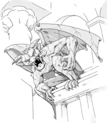 The gargoyle is a fantasy and horror monster inspired by the gargoyle architectural element. While they were believed in mythology to frighten away evil spirits, the idea of such statues physically coming to life is a more recent notion. Like golems, they are usually made of magically animated or transformed stone, but have animal or chimera traits and are often guardians of a place such as a cathedral or castle.[1] They can also be depicted as vessels for demonic possession or as a living species resembling statues.[2]