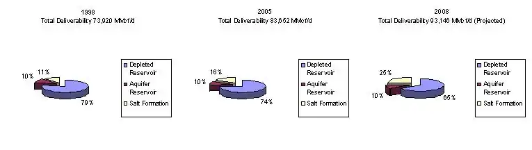 - ↑ Natural Gas Storage in the United States in 2001: A Current Assessment and Near-Term Outlook Archived 2007-02-10 at the Wayback Machine