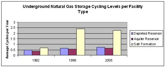 - Cycling rate: It is the average number of times a reservoir’s working gas volume can be turned over during a specific period of time. Typically the period of time used is one year.