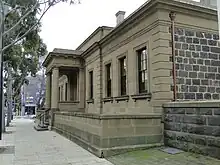 The Geelong Customs House is a bluestone and freestone classical style public building in Geelong, Victoria, built in 1855. It replaced a small timber prefabricated building of 1838, which was later relocated to the Geelong Botanic Gardens.[1]