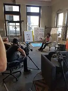 Genesis being interviewed inside his studio, by the Tennessee Entertainment Commission about his poetry and Fine Art.