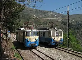 Five years later four electromotives were purchased by the Spoleto-Norcia railway: these were vehicles built by C&T\TIBB in 1926 and rebuilt by Casaralta\TIBB in 1957 with new electrical equipment. Transferred to Genoa in 1970, they entered regular service, numbered A4-A7, between 1971 and 1973[8] after having provided the necessary variation of gauge from 950 mm to 1000 mm.