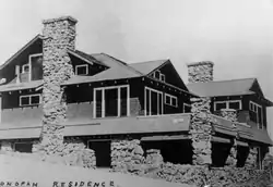The George A. Bartlett House, also known as the Old Knights of Columbus Hall, is a Shingle style house in Tonopah, Nevada, United States. The Shingle style is more commonly found in the northeastern United States, and is almost unknown in Nevada. The house stands on a height on Mount Brougher overlooking the town. The house was built by George A. Bartlett, later a U.S. Congressman, who lost the house in the Panic of 1907. The shingled house is set on a rubblestone foundation and features an asymmetrical plan, typical of the style. The house was used as a Knights of Columbus Hall, then abandoned.[2] Renovation began in 2008 to restore the house for use as a bed and breakfast.[3]