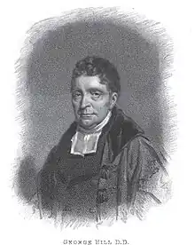 George Hill FRSE (27 May 1750–19 November 1819) was a Minister of St Andrews. He was a joint founder of the Royal Society of Edinburgh in 1783 and Moderator of the General Assembly of the Church of Scotland in 1789, but an active member for much longer, where he succeeded William Robertson as leader of the Moderates. He was Principal of St Mary's College, St Andrews as well as Dean of the Chapel Royal and Dean of the Order of the Thistle.
