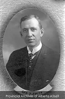 - ↑ "Early Provincial Political Figure, Member for Camrose, Hon. George P. Smith Passes", Camrose Canadian, December 2, 1942.