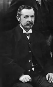 Ramsay was born at Abbotsford Place in the Tradeston district of Glasgow, the second son of William Ramsay, a master ironmonger, who originated from Perthshire and Mary Ann Burrell who was born in Woolwich.[3] After initially working with his father, the Glaswegian arrived in Birmingham 1876 to work as a clerk in a brass foundry.