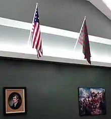 Of all the flags which may have been used during Clark's Illinois campaign, the 13-striped, red and green banner is the only banner historically documented, and was one of the first "American Flags" flown in the modern State of Indiana. The pattern has been flown by Indiana National Guard units deployed to both Iraq and Afghanistan.[11] Even though Clark, himself, probably never used it, the flag bears his name and is sold by flag retailers as a "George Rogers Clark flag." It is often flown at events in Indiana and Illinois to represent Clark's historic ties with those states. A red and green flag is still flown at the George Rogers Clark National Historic Park, and at the Locust Grove plantation near Louisville, Kentucky, where George Rogers Clark died.