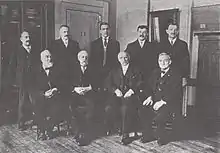 A photograph of the Mint engravers. Morgan is seated in the front row, second from right.