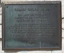 - 1 2 3 4 "George Taylor House". National Historic Landmark summary listing. National Park Service. Archived from the original on June 6, 2011. Retrieved February 11, 2008.