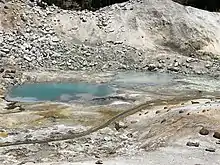 The geothermal areas in Lassen Volcanic National Park include several groups of hot springs and fumaroles, as remnants of former volcanic activity, exist in Lassen Volcanic National Park in northeastern California. Most of these lie in or are closely adjacent to Mount Tehama's caldera. Bumpass Hell is the most spectacular of these, but others of importance are Sulphur Works, Little Hot Springs Valley, Boiling Springs Lake and Devil's Kitchen. In each thermal area, the highest temperature of water generally is close to the boiling temperature at the altitude of the particular spring or fumarole — 198 °F (92 °C) at Bumpass Hell and 191 °F (88 °C) on the northwest flanks of Lassen Peak.[1] Temperatures as high as 230 °F (110 °C) have been recorded in the park.