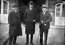 At the signing, Ribbentrop and Stalin enjoyed warm conversations, exchanged toasts and further addressed the prior hostilities between the countries in the 1930s.[105] They characterized Britain as always attempting to disrupt Soviet-German relations, stated that the Anti-Comintern pact was not aimed at the Soviet Union, but actually aimed at Western democracies and "frightened principally the City of London [i.e., the British financiers] and the English shopkeepers."[106]