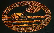 ![]() German rescue swimming badge in silver as a cloth badge as awarded by the Wasserwacht | |