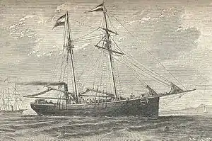 Fitted with an auxiliary steam engine,[1] it was especially built as the main research ship of the Second German North Polar Expedition of 1869–1870 that explored northeastern Greenland. The captain of the ship was Carl Koldewey, leader of the expedition.[2] Emperor Wilhelm I was present at the ship launching ceremony on 16 April 1869. The smaller schooner, Hansa—not fitted with an auxiliary engine—was the convoy and supply ship of the Germania during the expedition.