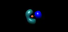 Electron localization function isosurface (η=0.7) of neutral GeH molecule in the ground electronic state. The C(Ge) basin is shown in orange, the V(Ge) basin is in turquoise, and the V(H,Ge).